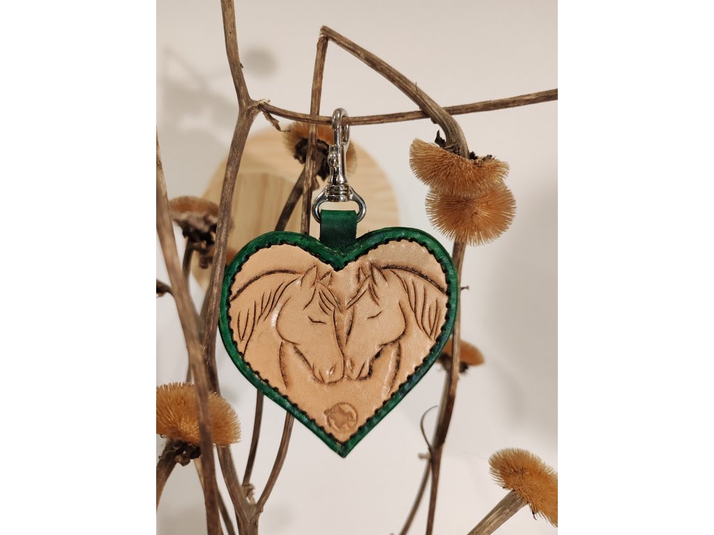 Větší kožený ručně vyrobený a zdobený přívěšek na klíče.