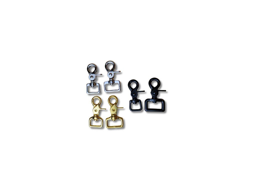 Karabinky k otěžím, snadno se otevírají a dají se připevnit i na klasické otěže, pro snadnější připnutí k uzdečce.